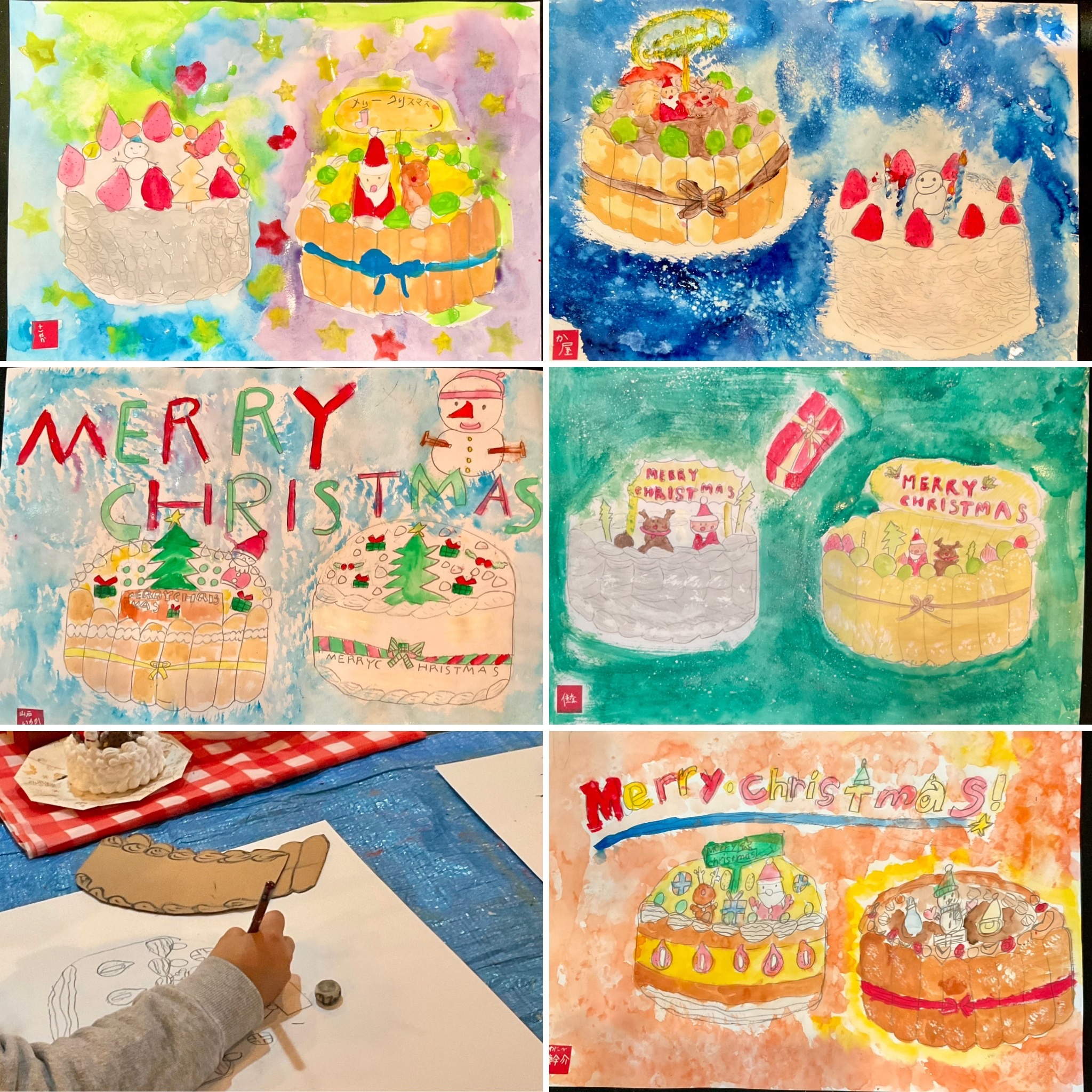 12月こども絵画は「クリスマスケーキ」を描きました。