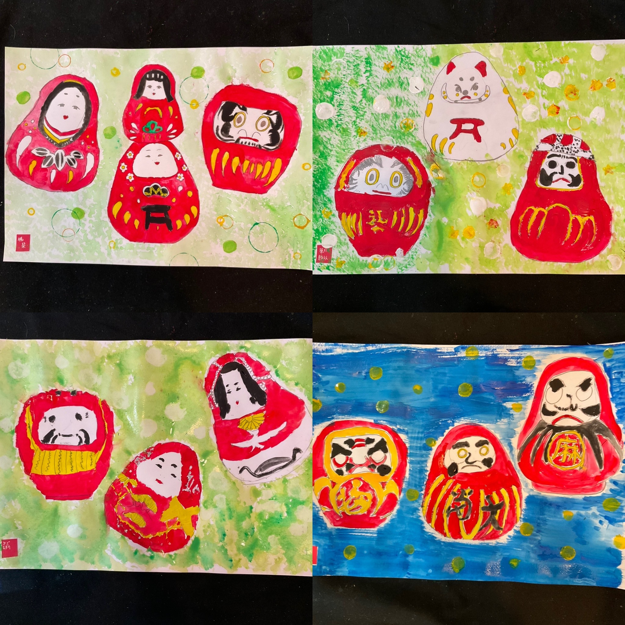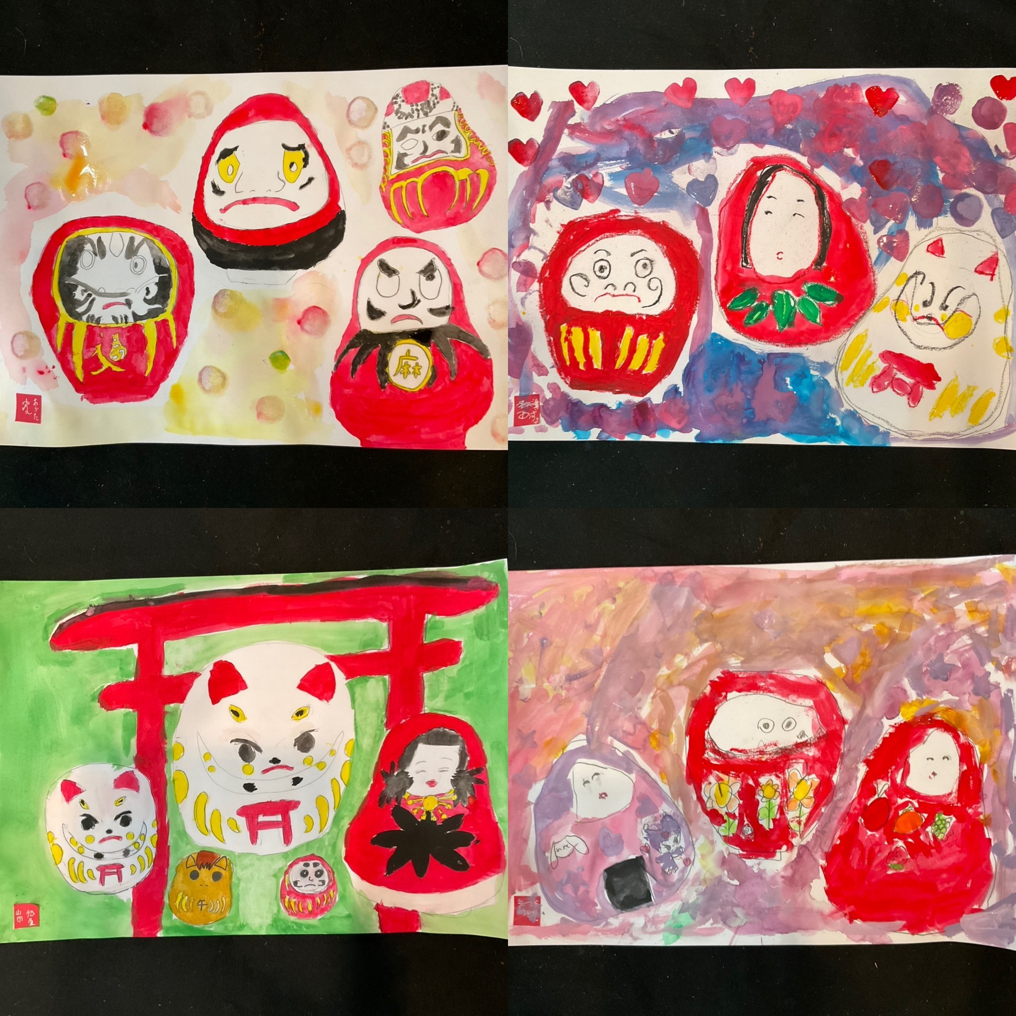 2026年1月こども絵画は、新春にふさわしく縁起物「だるまさん」を描きました。